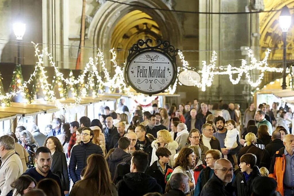 Las 107 casetas del Mercado de Navidad se extienden por la plaza Porlier y alrededores desplegando artesanía, productos navideños y dulces típicos. No faltan las mesas para poder sentarse a degustar alguno de los manjares que venden ni actividades infantiles y talleres donde los más pequeños soñarán viendo espectáculos de magia, se lo pasarán en grande con las ocurrencias del clown y los zancudos y aprenderán algo de globoflexia.
