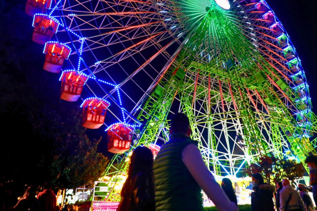 Si sois de natural ambicioso y no queréis perderos nada, no hace falta que planeéis recorridos maratonianos. Os bastará con subiros a la noria (sí, también hay noria; y sí, también es gigante) y contemplar desde las alturas cómo la Navidad recorre Vigo. Cuando estéis abajo, acercaros a echar un vistazo al parque de atracciones infantil o dedicad un rato al placer de deslizarse en patines por su pista de hielo.